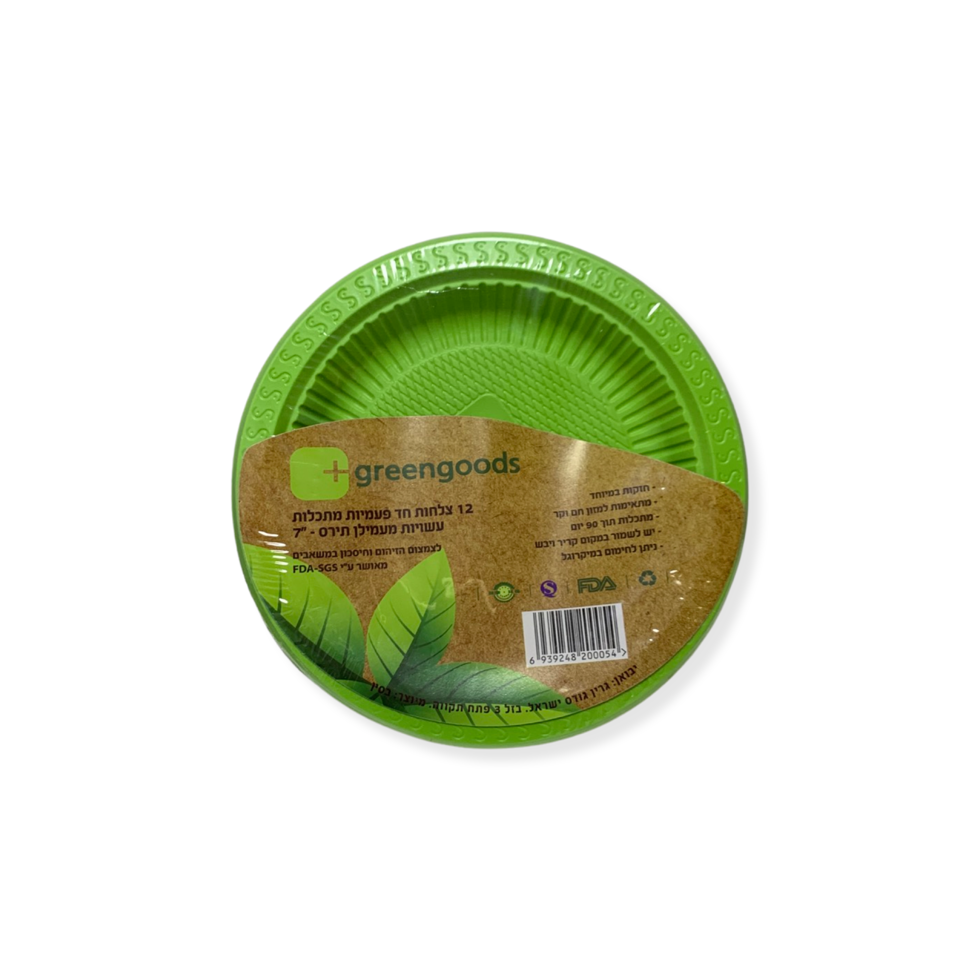 צלחת עמילן תירס ירוקה קטנה מתכלה 17 ס''מ - 12 יח