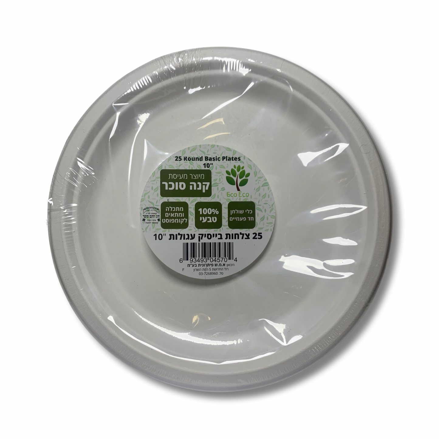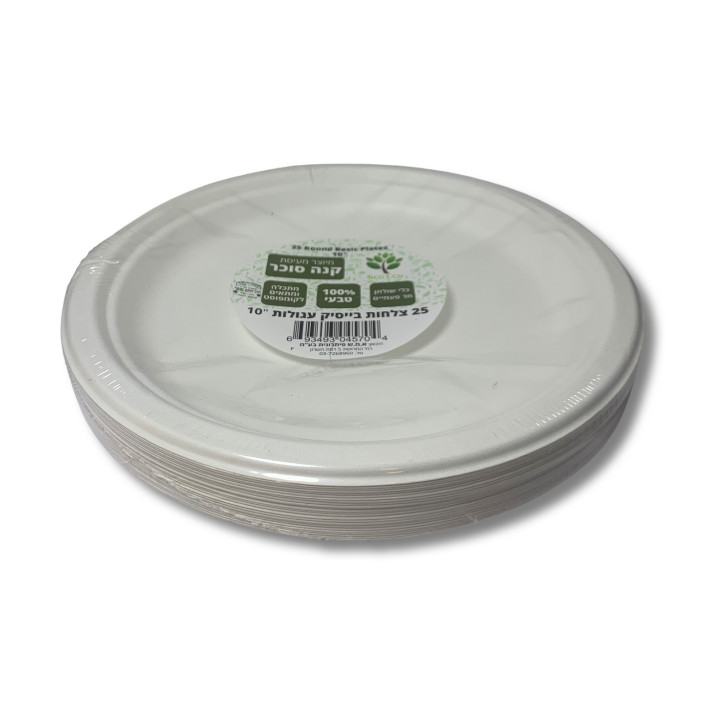 צלחת קנה סוכר מתכלה עגולה גדולה 26 ס''מ - 25 יח