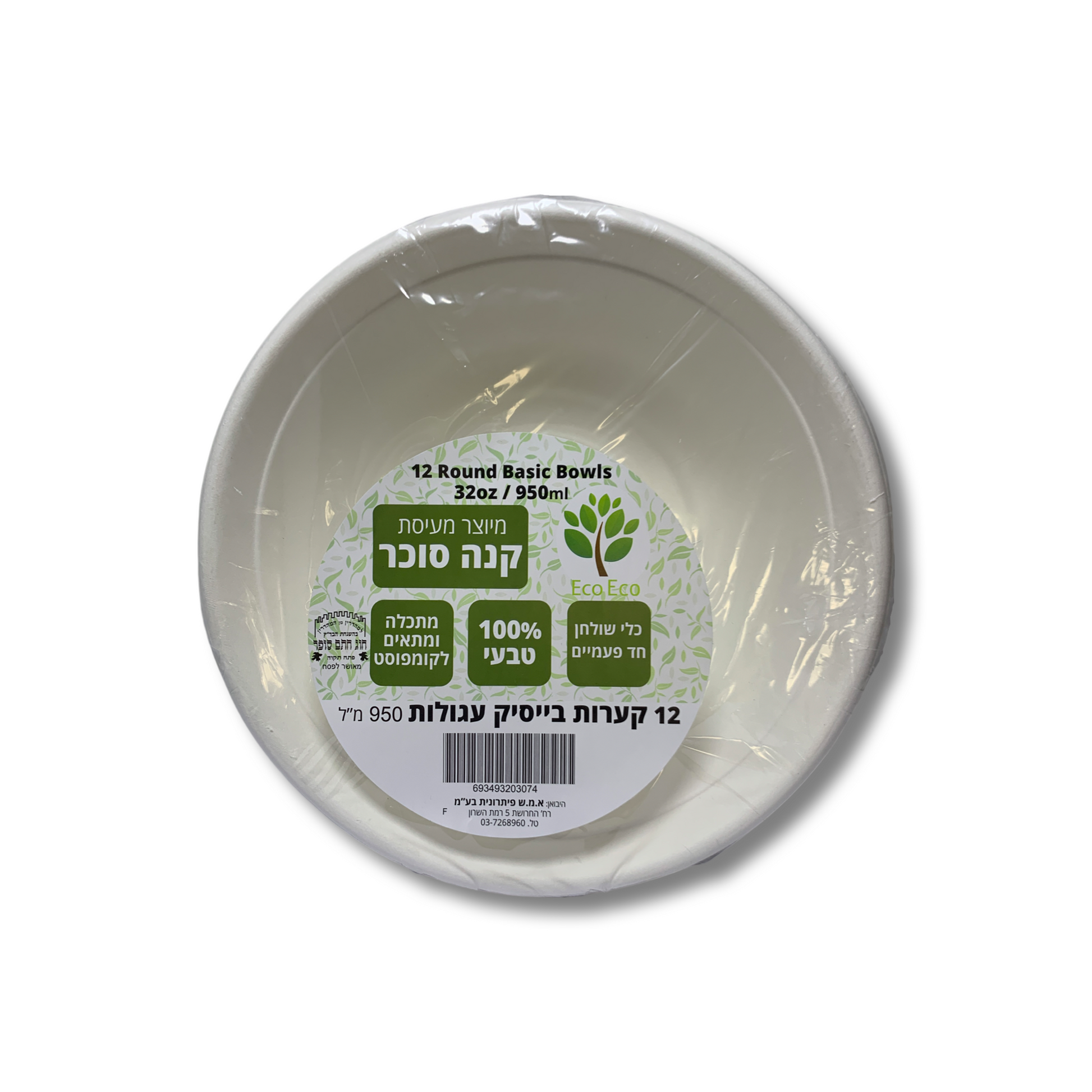 קערת קנה סוכר גדולה מתכלה 950 מ''ל - 12 יח