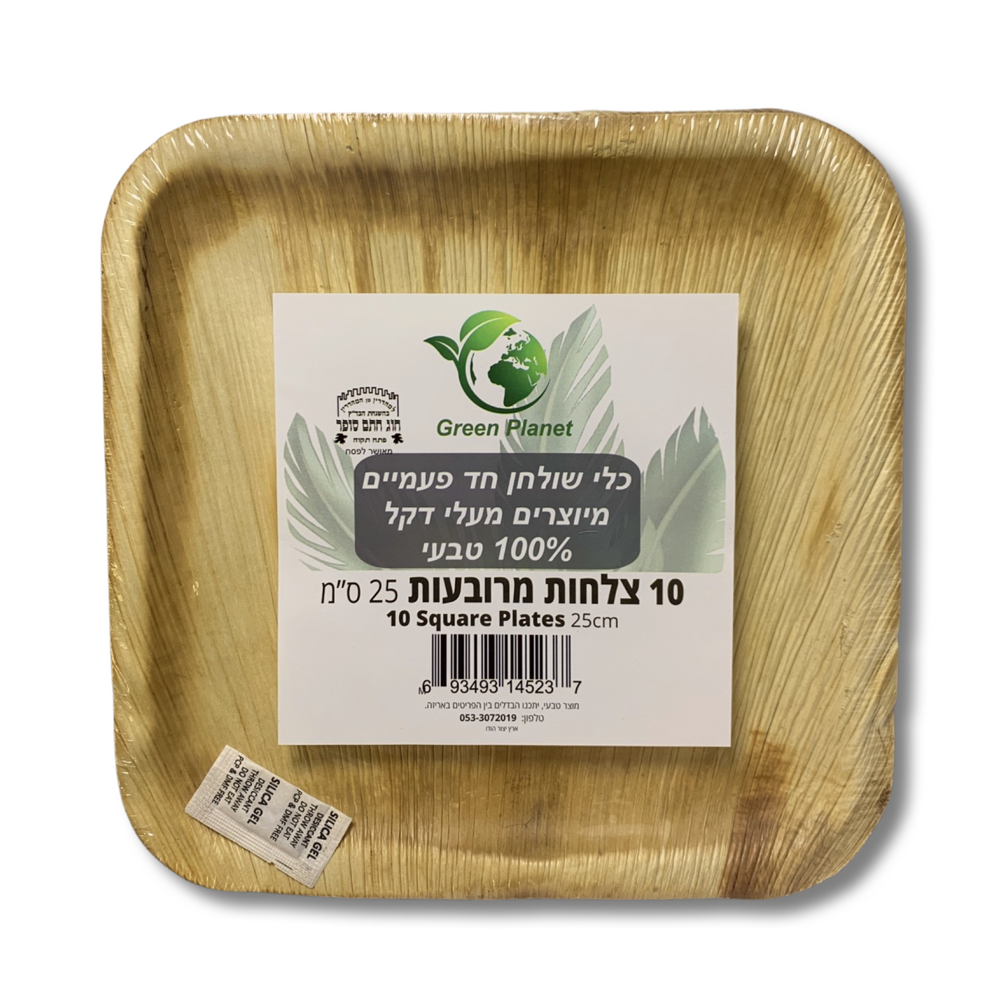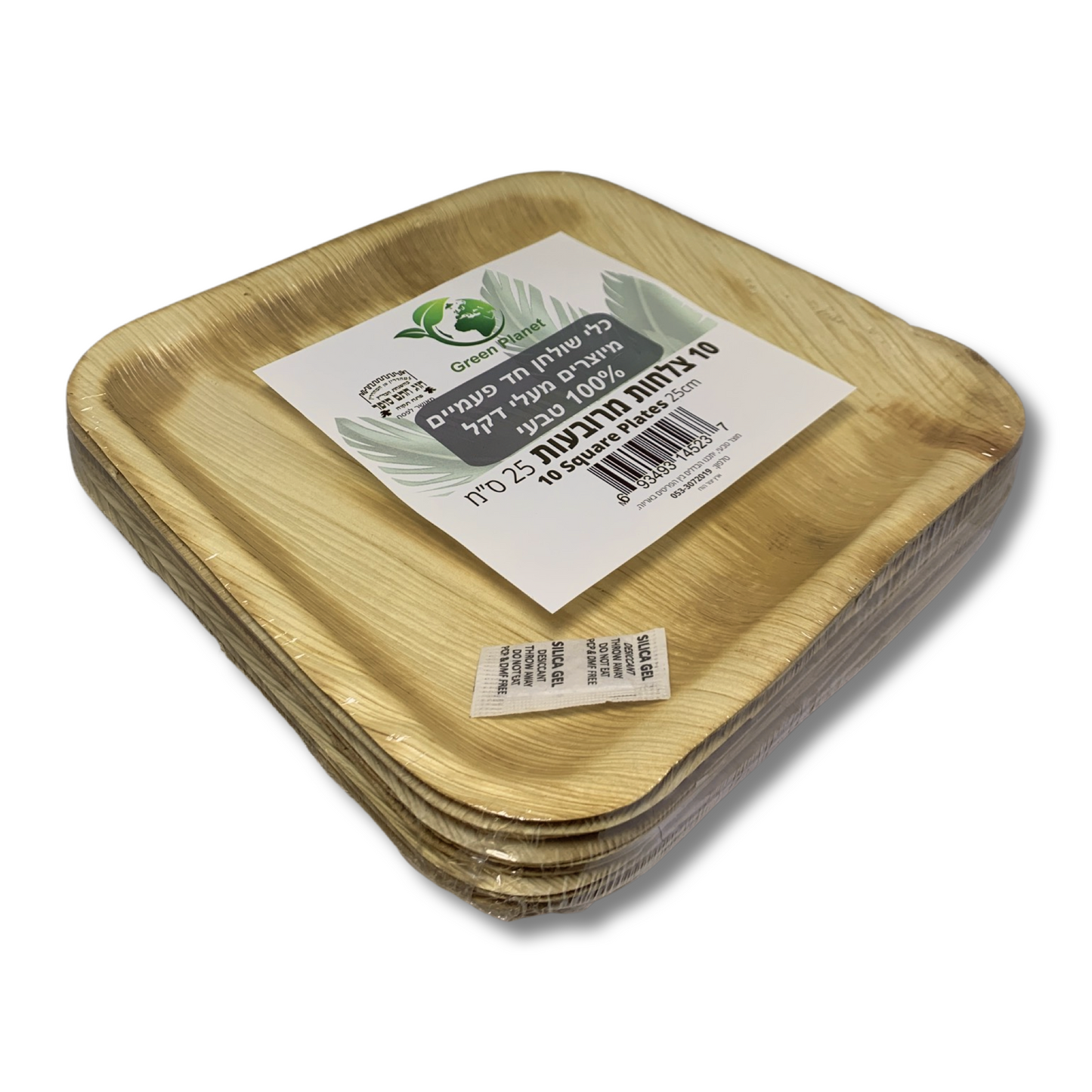קרטון צלחות עלי דקל מרובעות גדולות מתכלות 25*25 ס''מ - 200 יח